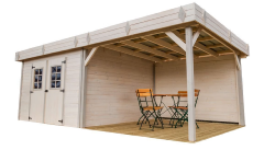 Abri Madriers avec Terrasse en Douglas Massif / 28 mm / surf;ext : 20.64m²