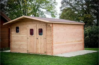 Abri Madriers en Douglas Massif / 28 mm / sur.ext: 18,90m²
