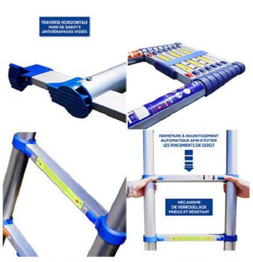 Son système de verrouillage automatique, ses protections anti-pincement, ses marches antidérapantes et ses pieds larges grip en font un outil sûr, fiable et agréable à utiliser au quotidien.