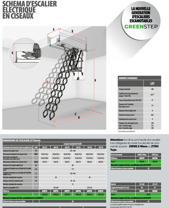 Escalier LET Electric - Hauteur max. sous plafond 2.90m