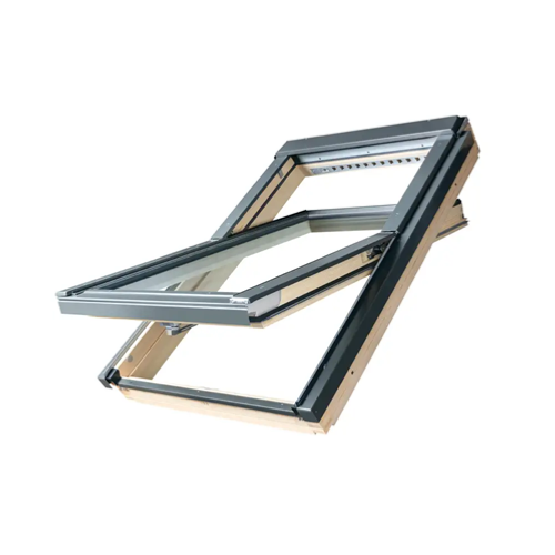 La fenêtre de toit à rotation FTP-V G2F est une fenêtre de toit en bois à ouverture pivotante centrale, conçue pour apporter un excellent apport lumineux, une ventilation naturelle intégrée et une isolation thermique performante.