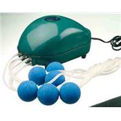 L'oxygène est directement diffusé dans l'eau du bassin ou bien directement dans un filtre de bassin par l'intermédiaire d'un ou de plusieurs diffuseurs, chacun étant relié à la pompe d'aération par un tuyau. Les pompes d'aération Air” fonctionnent toutes sur la base de membranes. Chaque sortie est munie d'une membrane. Cette membrane oscille grâce à un aimant, absorbe l'air et le restitue grâce à cette même oscillation. Le refoulement de l'air dépend de la force de l'aimant.