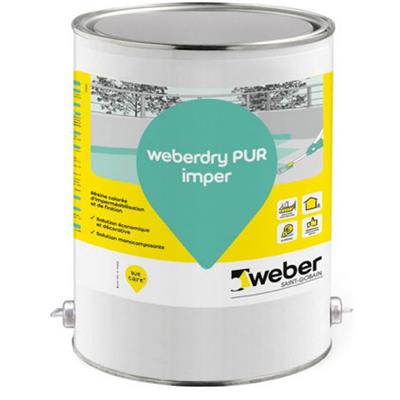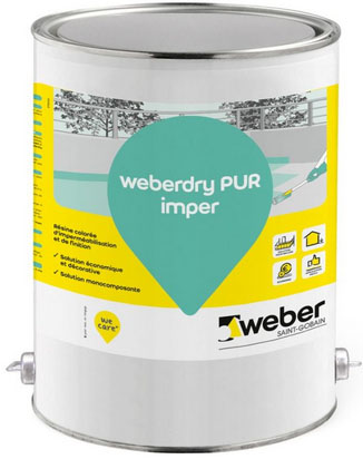 Etat physique : Pâte semi-fluide monocomposante autolissante, aspect brillant après séchage. • Viscosité : 30 Poises à 23°C remarque : la viscosité est donnée à titre indicatif, s'agissant d'un monocomposant, celleci est susceptible d'évoluer • Extrait sec : 74% (± 3%) • Densité : 1.03 • Point éclair : 48°C • Inflammabilité : Facilement inflammable • Séchage : 3 à 12h en fonction des conditions climatiques (4h à 23°C), ne pas dépasser 24h entre 2 couches, sinon réactiver la surface à l'aide de werberdry nettoyant et appliquer weberprim PUR avant la couche de weberdry PUR imper