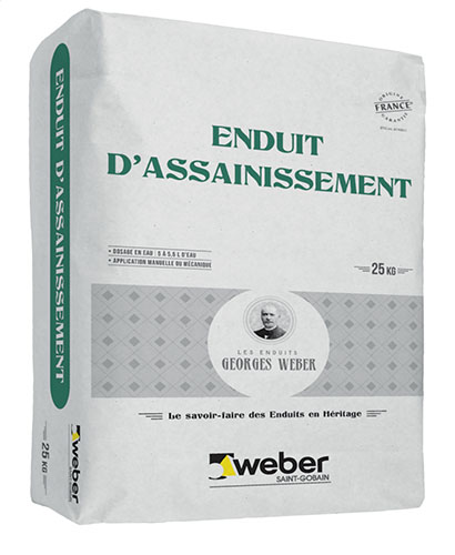 • sous-enduit d'assainissement de maçonneries anciennes, humides et salpêtrées, appliqué manuellement ou par projection mécanique