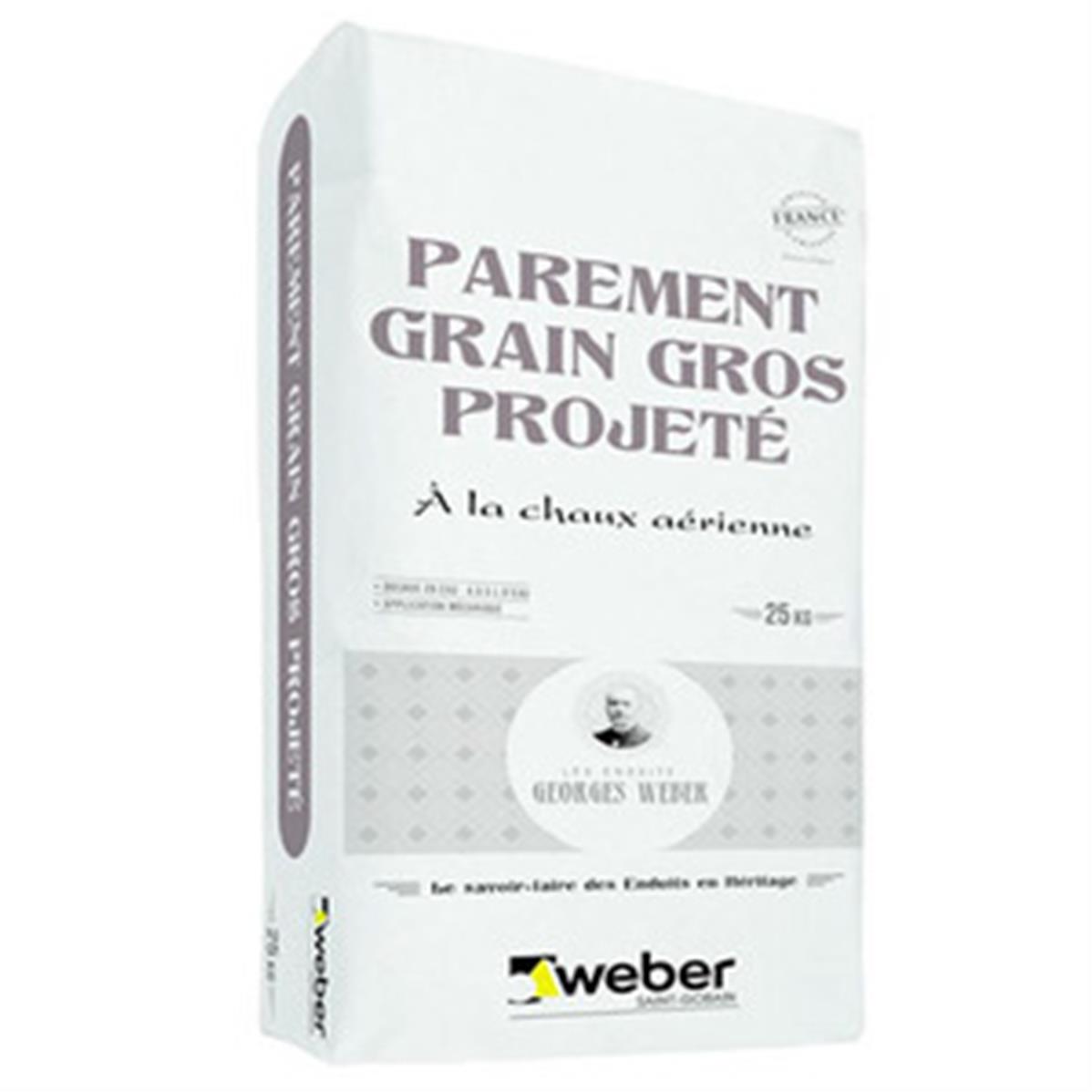 • enduits épais de parement projetés à la chaux aérienne (couche de finition d'un enduit en deux couches projetées mécaniquement conforme à la norme NF DTU 26-1)