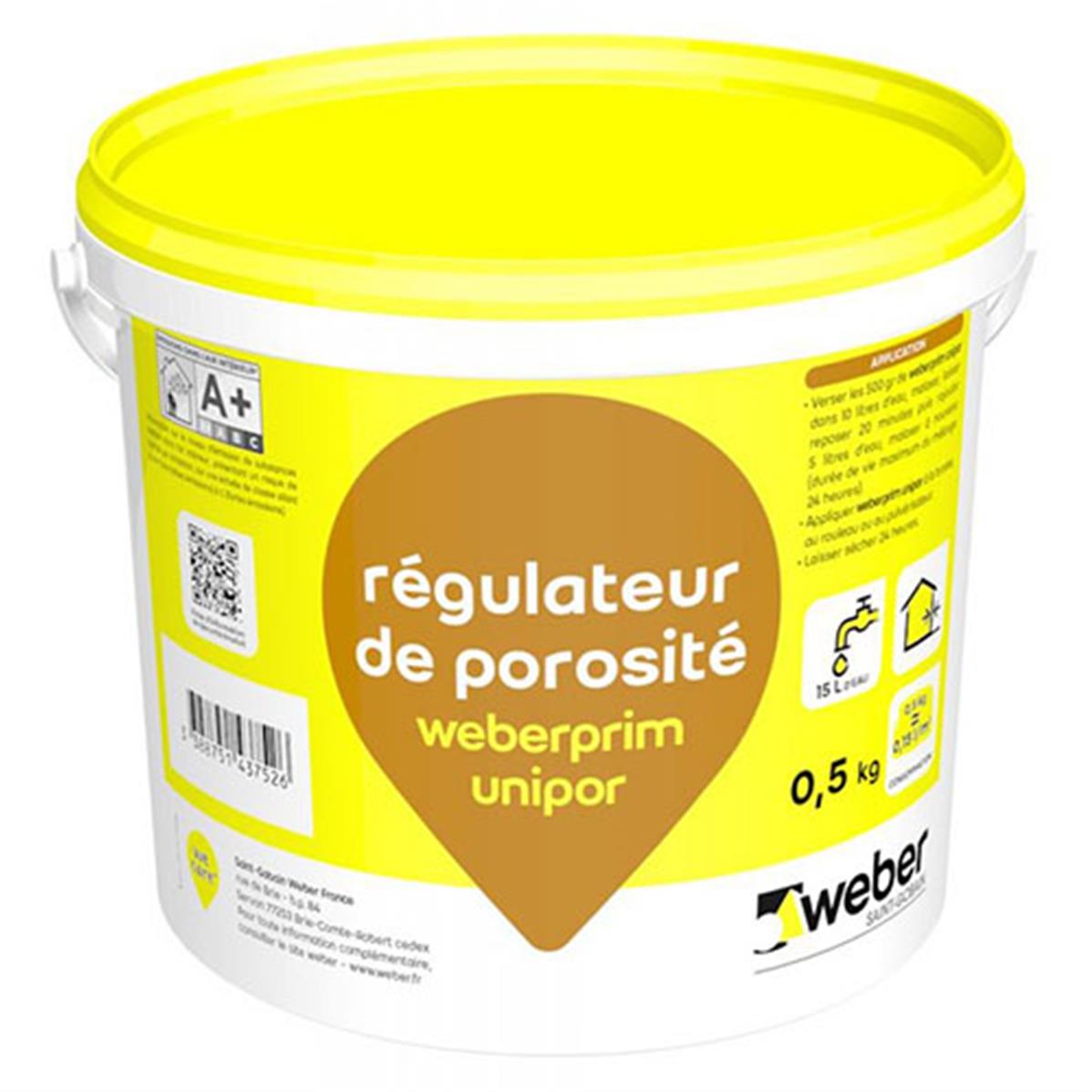 1. • appliquer sur le support 24 heures avant la mise en œuvre de la finition • pour gâcher weberprim unipor, verser les 500 g dans 10 l d'eau, malaxer, laisser reposer 20 minutes • rajouter 5 l d'eau, malaxer à nouveau • durée de vie maximum du mélange : 24 heures