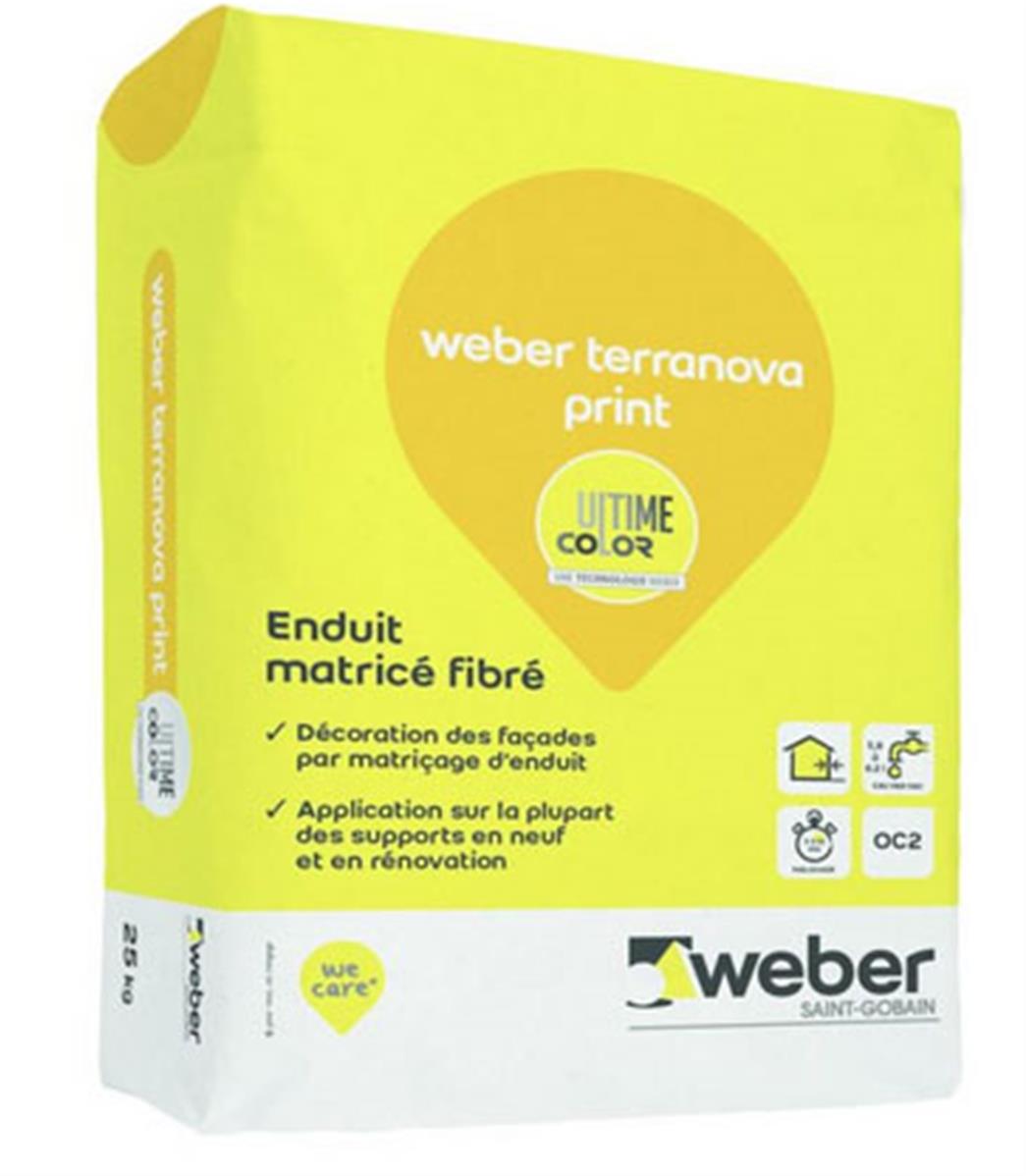 éliminer les salissures : terre, laitance de surface • garnir les joints, reboucher les trous en exécutant un renformis (cf. NF DTU 26-1) avec l'enduit weber terranova print ou avec le mortier weber.mur épais (support parpaings) 1. maçonneries de parpaings • par temps chaud et vent sec, pour éviter les risques de grillage, arroser le support, soit la veille soit avant l'application, en prenant soin d'attendre la disparition de la pellicule d'eau avant de mettre en œuvre l'enduit (cf. Conseils de pro) 2. maçonnerie de briques • arroser soit moins d'une demi-heure avant l'enduisage, soit à l'avancement (cf. NF DTU 26-1) 3. béton ou sous-enduit • dans tous les cas, éliminer les balèvres et dresser les ressauts avec webermur épais, éliminer les coulures de laitance et d'huile de décoffrage, les salissures... support rugueux et absorbant • vérifier la porosité du support en jetant de l'eau sur le mur. Si le support absorbe l'eau, il est possible d'appliquer weber terranova print directement après humidification • par temps chaud et vent sec, pour éviter les risques de grillage, humidifier et attendre la disparition du film d'eau avant de projeter • sur sous-enduit réalisé avec weberdur L, projeter un gobetis de 2 à 3 mm d'épaisseur de weber terranova print gâché avec une préparation de 1 volume de weber accrochage pour 4 volumes d'eau. Laisser tirer support lisse ou non absorbant • projeter un gobetis de 2 à 4 mm d'épaisseur de weber terranova print gâché avec une préparation de 1 volume de weber accrochage pour 4 volumes d'eau. Laisser tirer (délai conseillé : 4 à 24 h selon conditions climatiques)